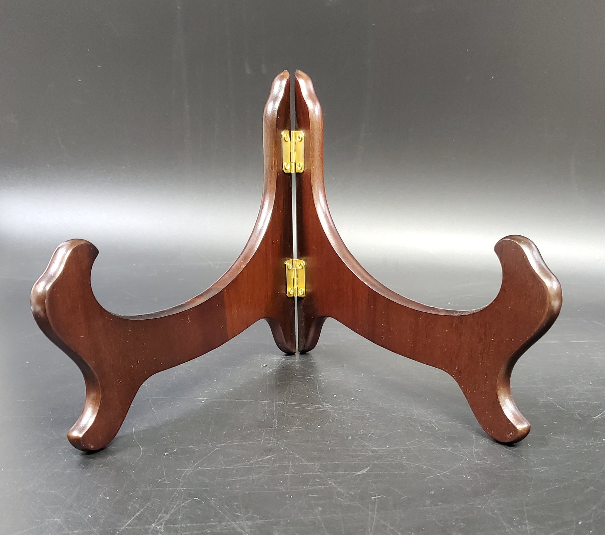 Display your prized possessions in style with the Dark Brown Bowl Easel WB-6. This 6-3/8" tall easel beautifully showcases your items. Its sturdy design ensures safe and stable presentation, making it perfect for exhibitions, galleries, or at home. Elevate your display game with this sophisticated easel.